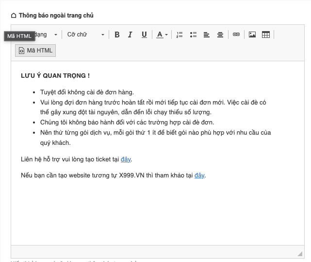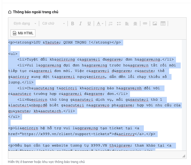 Cách làm đẹp nội dung thông báo trên trang web quý khách làm theo hướng dẫn dưới đây
