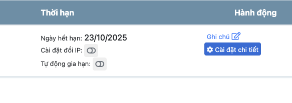 Bước 5: Sau khi thanh toán Proxy xong quý khách nhấn vào nút Cài đặt chi tiết.