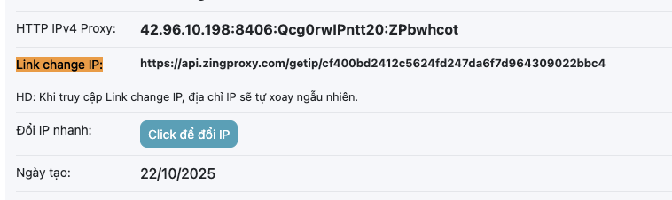 Bước 6: Sao chép Link change IP: như hình dưới.