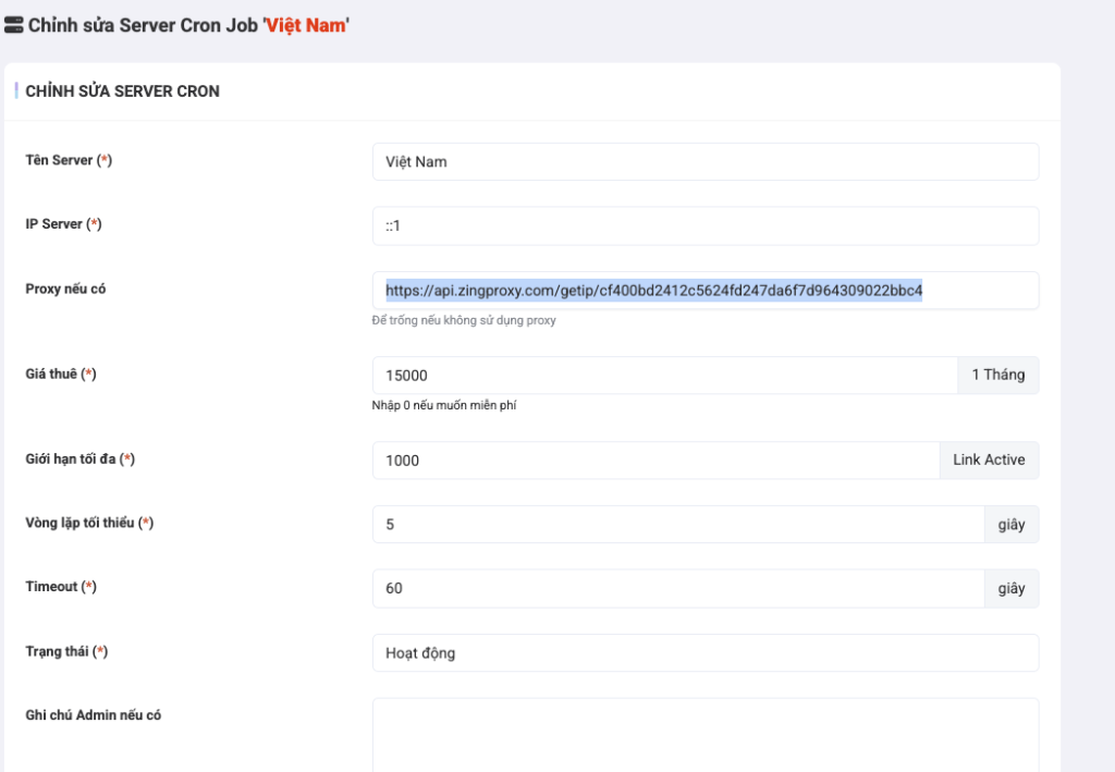 Bước 7: Dán Link vừa sao chép vào Admin Panel -> Chỉnh sửa Server Cron