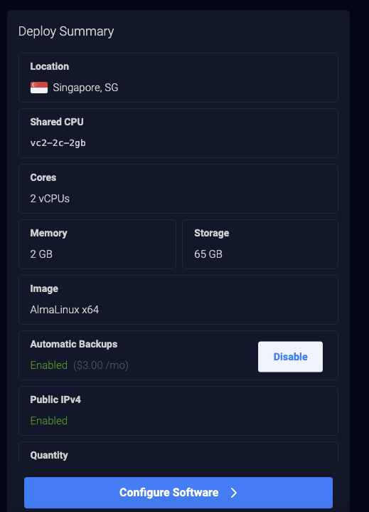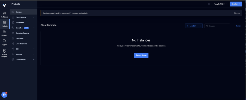Bước 8: thực hiện thanh toán cho phía Vultr để hoàn tất mua hàng.