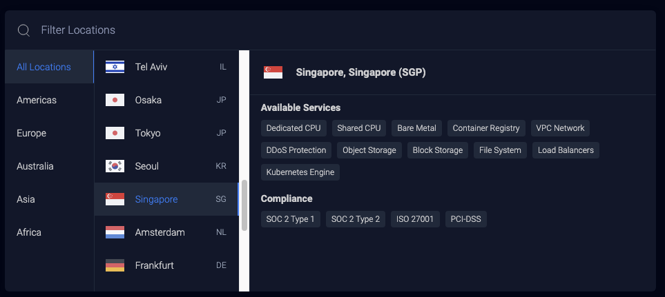 Bước 4: ở phần Filter Locations nên chọn Singapore để giảm deplay khi truy cập website từ Việt Nam.