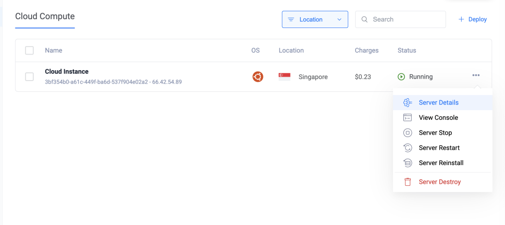 Bước 9: Truy cập vào Server Details máy chủ bạn vừa mua.