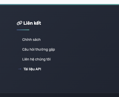 Bước 1: Truy cập vào website cần kết nối -> kéo xuống dưới chân trang -> nhấn vào nút Tài liệu API.