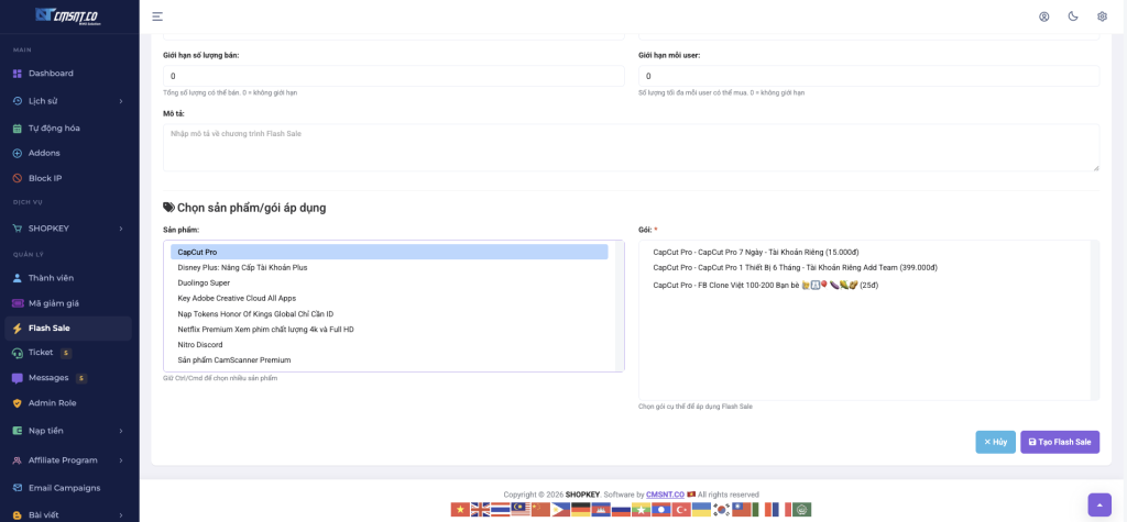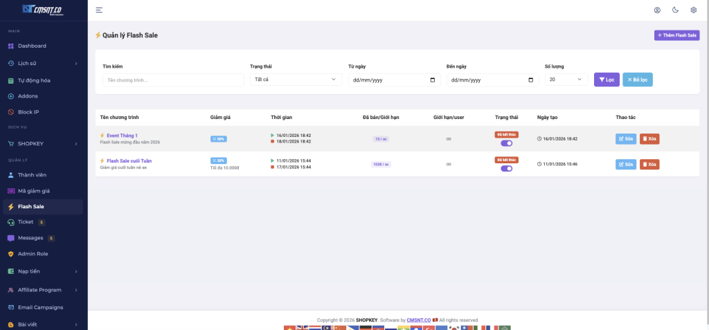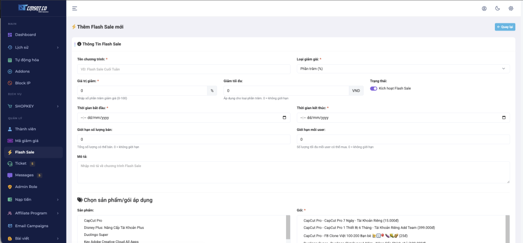 Trang quản trị → SHOPKEY → Flash Sale
