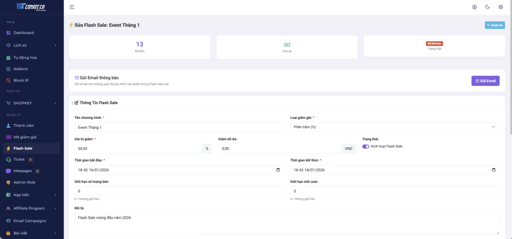 8. Trang Sửa Flash Sale & Gửi Email