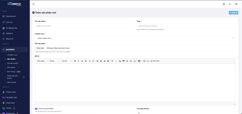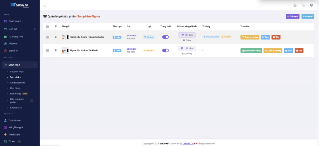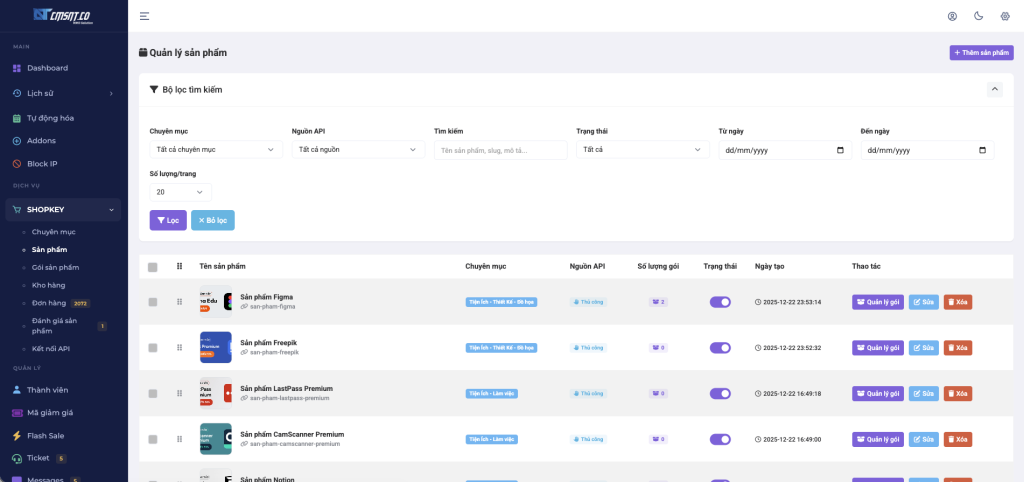 Trang quản trị → SHOPKEY → Sản phẩm